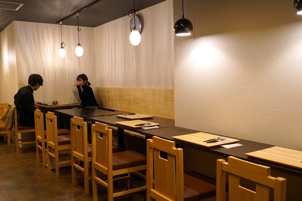 京都のお店らしく、間口は狭く、奥行きがある間取りで2階建て。1階にはおひとりさまにも利用しやすいカウンター席もあります。