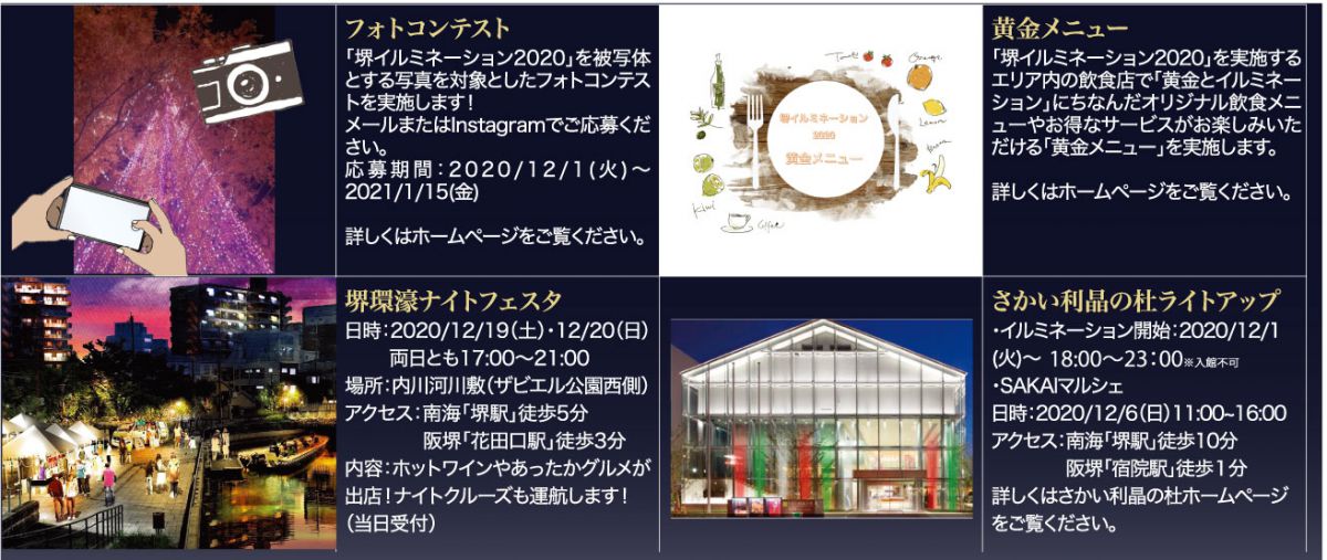 イベント期間中には『堺イルミネーション2020』をテーマとしたフォトコンテストも開催されます。
