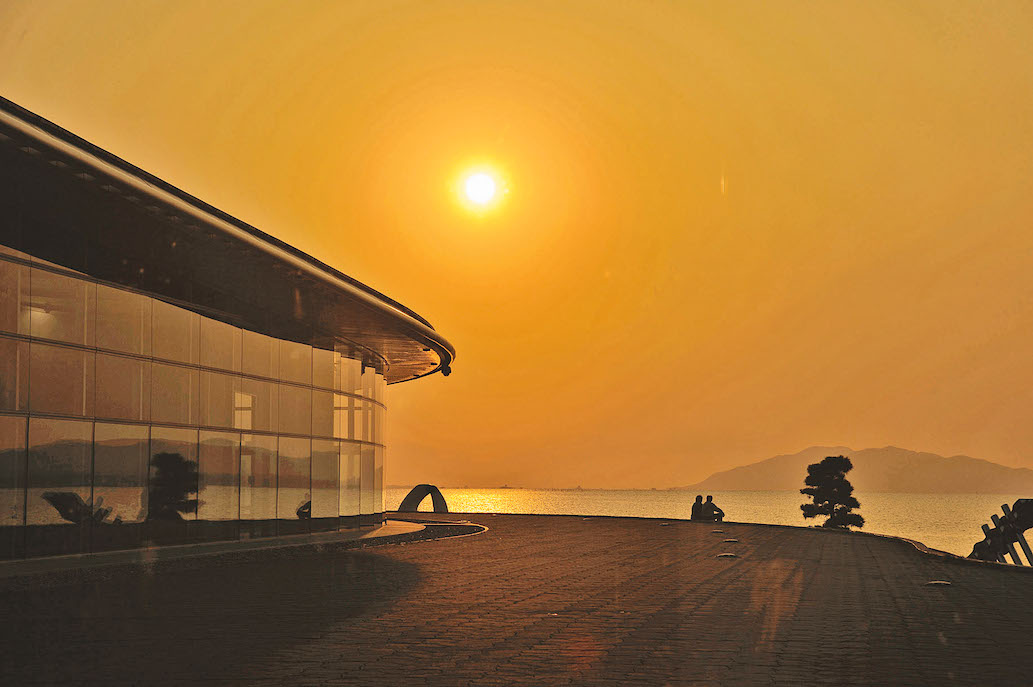 宍道湖は「日本の夕陽百選」に選ばれるほどの美しさで、湖畔にはさまざまな夕日スポットが点在しています。島根県立美術館も代表的なスポットの一つで、無料開放されている前面ガラス張りのロビーでじっくり鑑賞できる夕日はきっと素敵な思い出に。