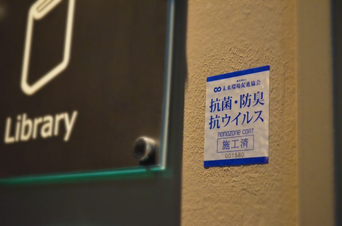 館内はすべてWITHコロナ時代に対応した、抗菌・防臭・抗ウィルスの「ナノゾーンコート」を施工済み。「ナノゾーンコート」とは2ナノサイズ酸化チタンを使った光触媒の防汚・消臭・抗菌コーティングのことで、酸化チタンは紫外線を受けると酸化酵素を発生し、菌やウイルス・VOCなどを水とCO2に分解。むずかしいことはわかりませんが、人にも環境にもやさしい抗菌コーティングです。