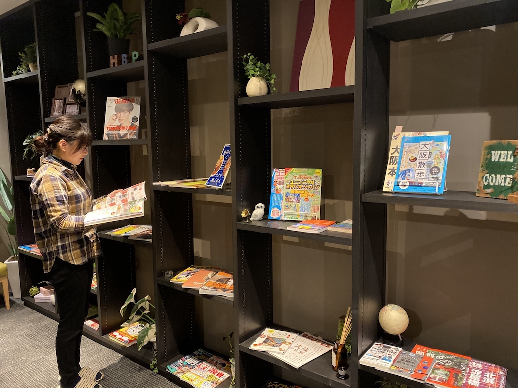 ゆったりとしたスペースのlibraryエリアには、大阪観光をより楽しめるガイドブックや子どものための絵本が充実。