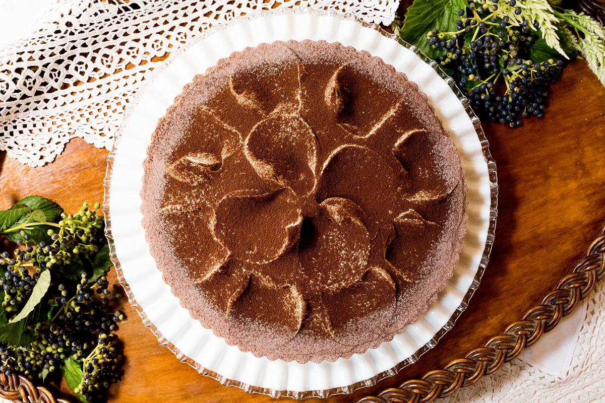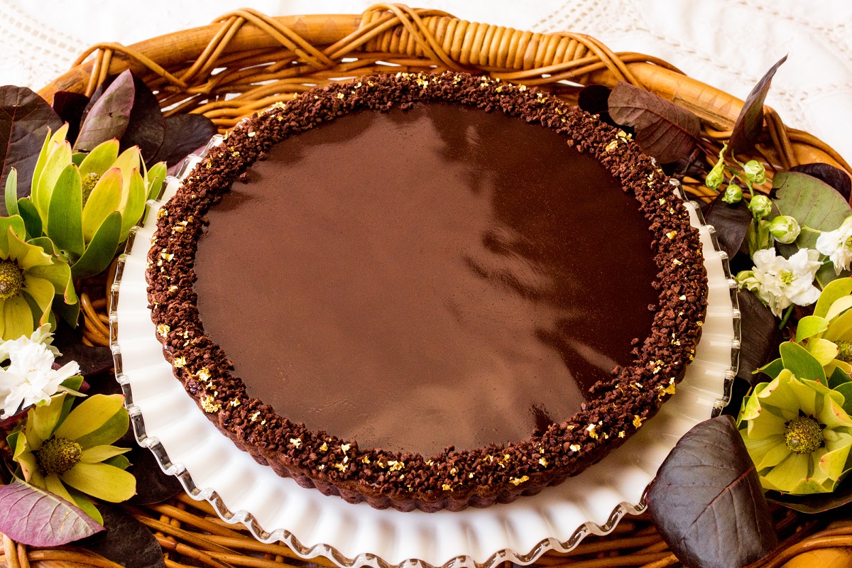 「チョコレートクリームのタルト」piece721円/whole(17cm)4536円/(25cm)8765円は、世界のカカオの年間収穫量の2~3%しか取れない、高価な希少種エクアドル・アリバ地方産のクリオロ種のみを使用したチョコレートで作ったタルト。