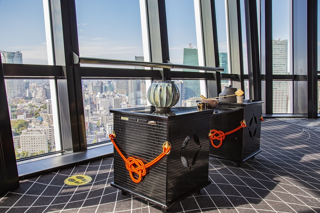 美しい眺望で至福の一服。東京の空の中で、朝の茶室をしてみませんか。