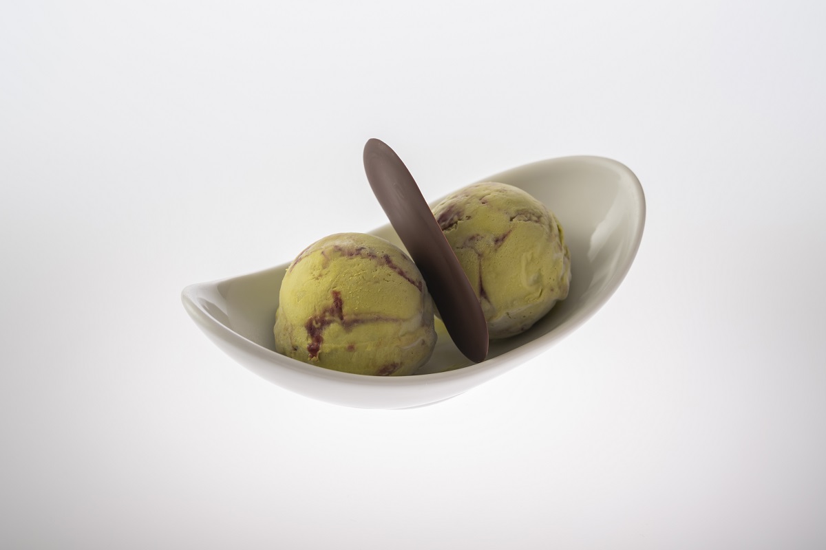 香り豊かなピスタチオアイスの中にはフランボワーズジャムが入っています。定番人気のチョコレートアイスとあわせて楽しんで。