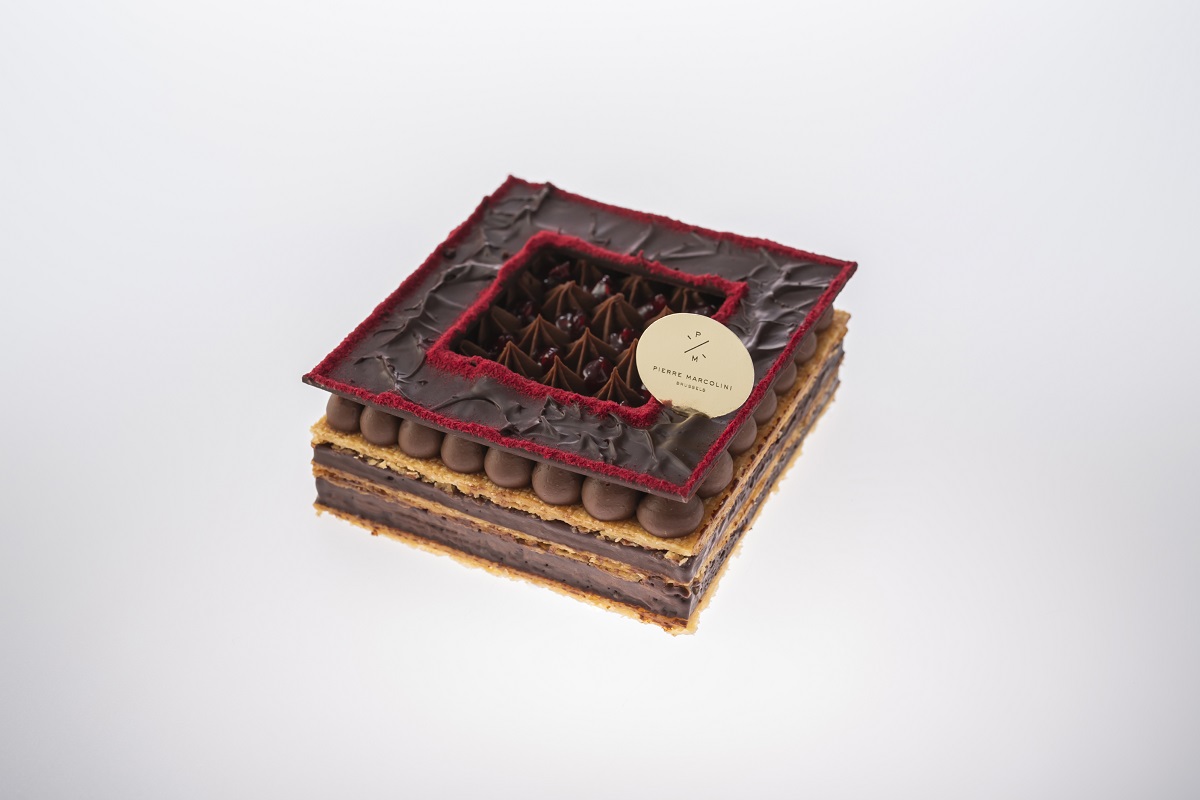 限定のクリスマスケーキも「マルコリー二 チョコレートミルフィーユ ホール」(4800円・税抜))は、カカオ香るストレートな2種のチョコレートクリームとサクサクのパイを重ねた一品。甘酸っぱいフランボワーズジャムとビターチョコレートが、オトナ女子のクリスマスにぴったりです。