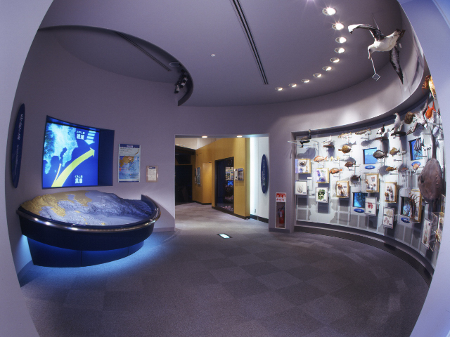 千葉県立中央博物館の分館。勝浦海中公園に隣接し、房総半島の海の自然を紹介しています。展示室は「房総の海」「さまざまな海の姿」「博物館をとりまく自然」「海と遊ぼう」の4コーナーに分かれ、房総の海に棲息する魚の標本や海底のジオラマを展示。