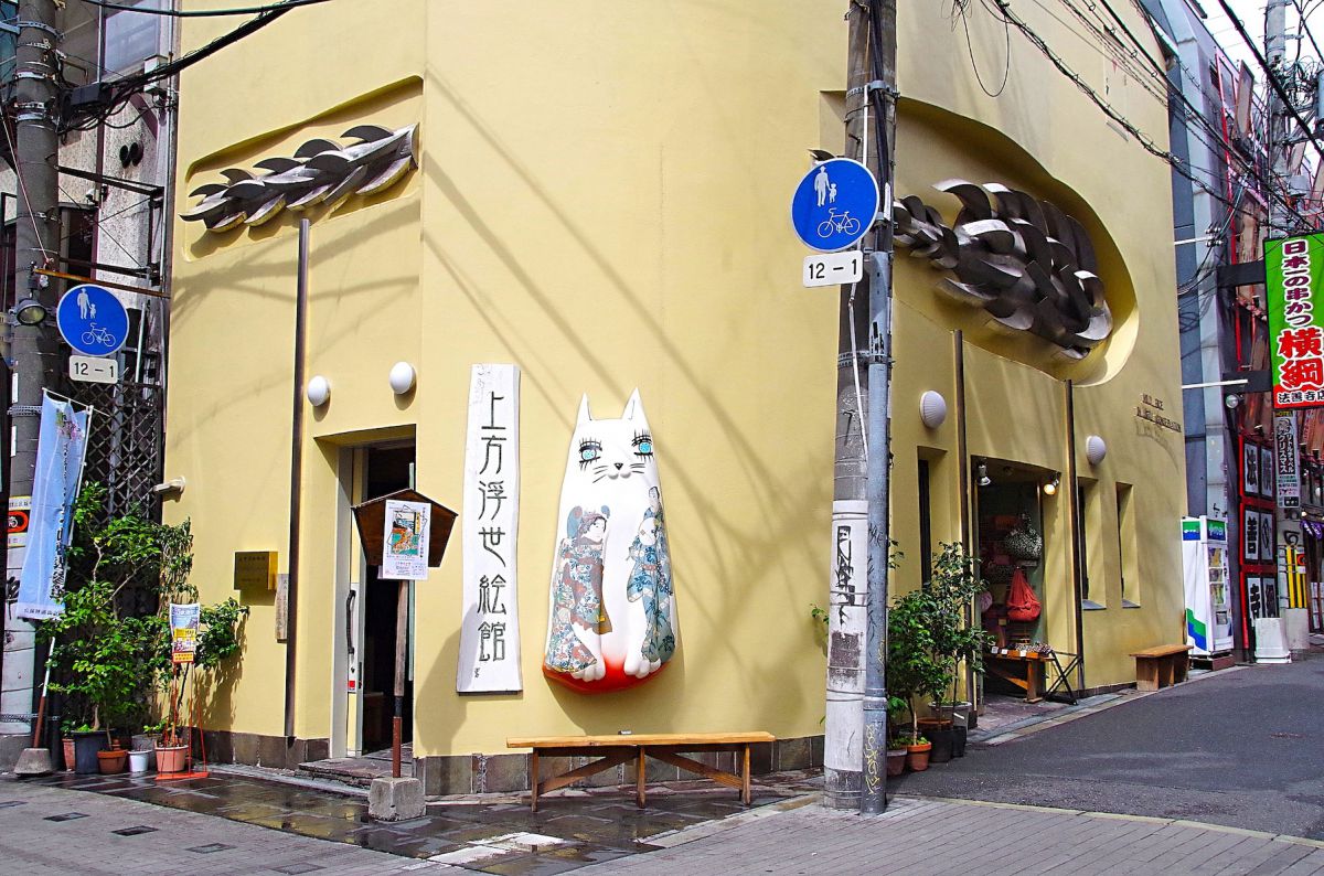 なんばの法善寺横丁に位置する、上方浮世絵を専門に展示する美術館。江戸時代後期から明治時代にかけて大阪や京都で制作された浮世絵を中心に、歌舞伎役者の似顔絵や当時の風俗を描いた作品など、約30点を3カ月に一度テーマを替え企画展示しています。 館内では、浮世絵の制作工程や技法について学べる展示も。また、浮世絵の摺り体験や、オリジナルグッズの販売もあって人気です。大阪の歴史と文化にふれるひとときを、ぜひ体験してみてください。