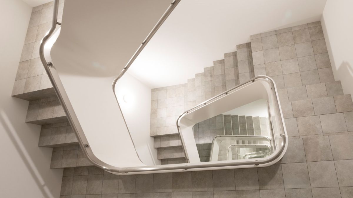 「KAMU Center」はメインの展示スペースでもあります。「金沢21世紀美術館」の《スイミング・プール》で知られるレアンドロ・エメリッヒ氏の作品《INFINITE STAIRCASE》は、一見、螺旋階段を見下ろすようなビジュアルですが、実際に作品に向き合うと、階段のサイズ感、上下左右の方向感覚が揺さぶられます。
