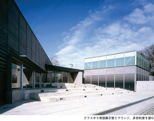 庭園は勅使河原宏、銘板は亀倉雄策によるものです。中庭にあるイサム・ノグチの彫刻もみどころのひとつ。また、周囲の飯森山公園では、毎年4月下旬には八重桜が、6月下旬~7月初旬にはアジサイやアヤメが見頃となり、散策が楽しめます。