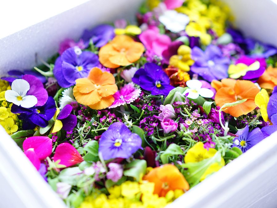仕上げにエディブルフラワーをあしらって。
