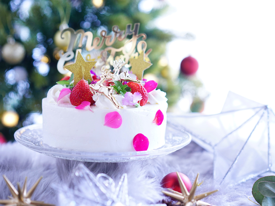 エディブルフラワー活用③【ラグジュアリーなクリスマスケーキ】