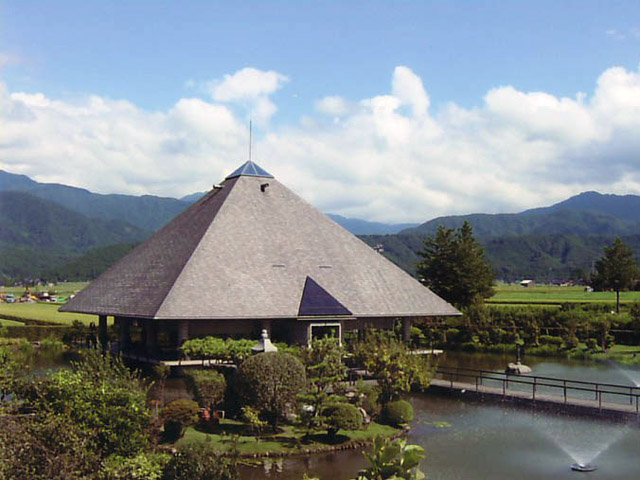 美術館の名は青柳氏の号「百河豚(いっぷく)」から命名されました。本館はピラミッド風の屋根が目を引きます。年1〜2回の企画展示を開催。名水を使用した喫茶では、四季折々美しい庭園も楽しめます。