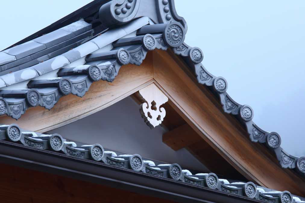 ちょっと見えにくいですが、客殿の屋根に付いた懸魚(けぎょ)もハート型です。