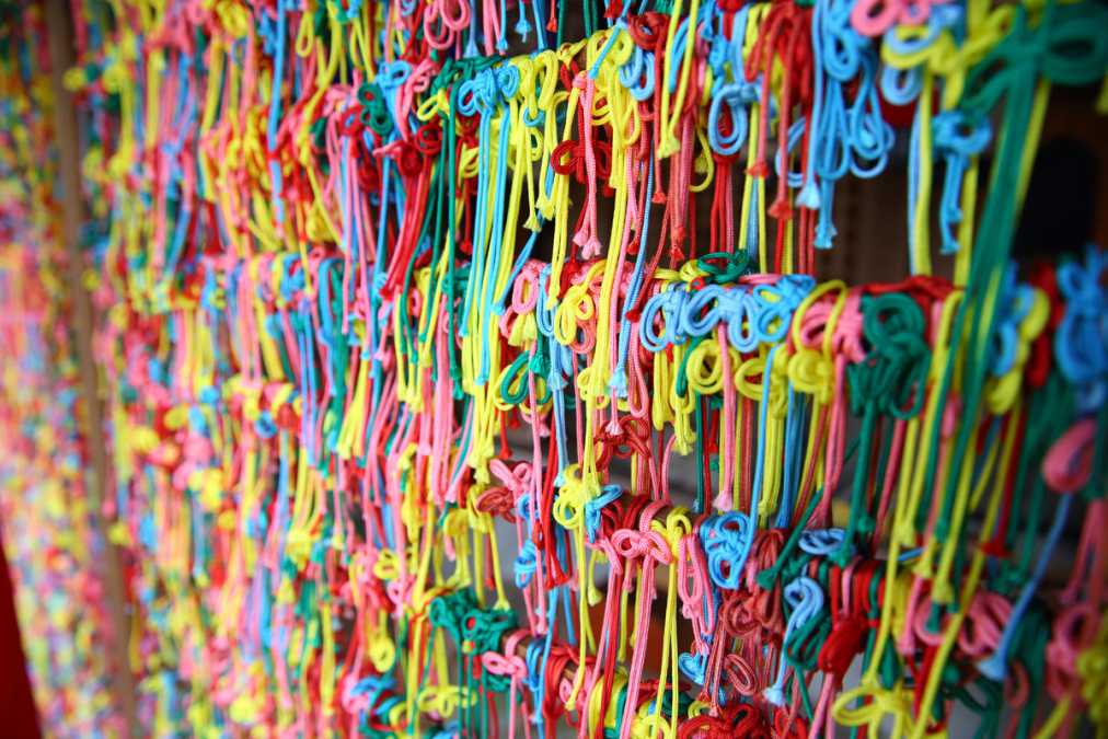 本堂のある境内には、地蔵堂もあります。ここに結ばれているカラフルな紐は、“叶紐”といって、8の付く日にお参りするといただくことができます。