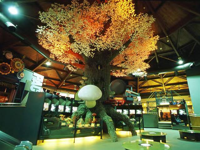 キノコや山菜、漆、桐など林産物の知識が得られる博物館です。館のシンボル・博士の不思議な木の周辺にある展示スペースを、森の妖精が案内するという設定になっています。森の自然の造形や天然素材を使った生活用品、玩具を置いた森のクラフトパーク、キノコのレプリカや顕微鏡写真でその生態を観察できる博士のきのこ研究室などで、森の恵みについて楽しみながら学べます。