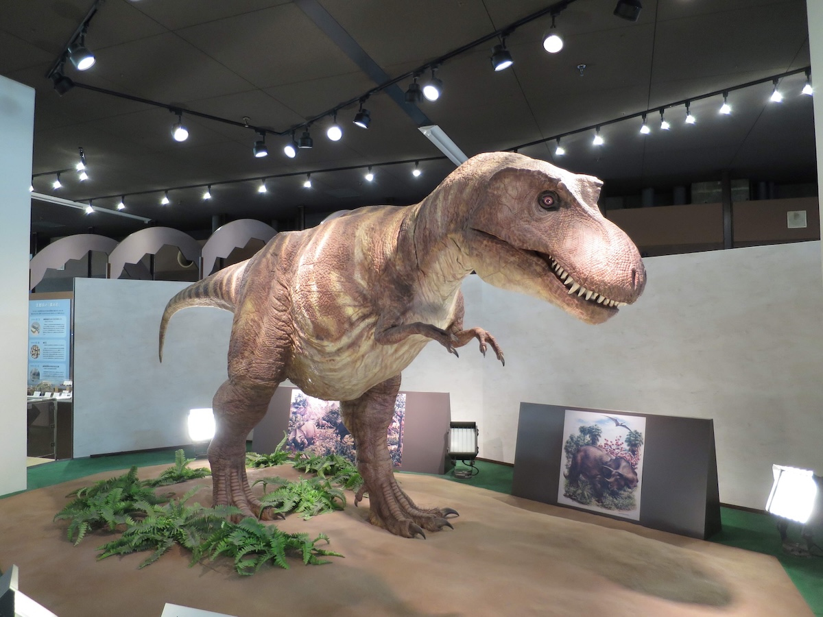見て、ふれて、楽しみながら科学を学べる体験型の科学館です。 2階の第1展示場には、しゃべるティラノサウルスの模型や恐竜の全身骨格標本をはじめ、アンモナイトなど本物の化石にふれられる「化石トンネル」があり、昆虫や貝など生き物をテーマにした展示も充実しています。