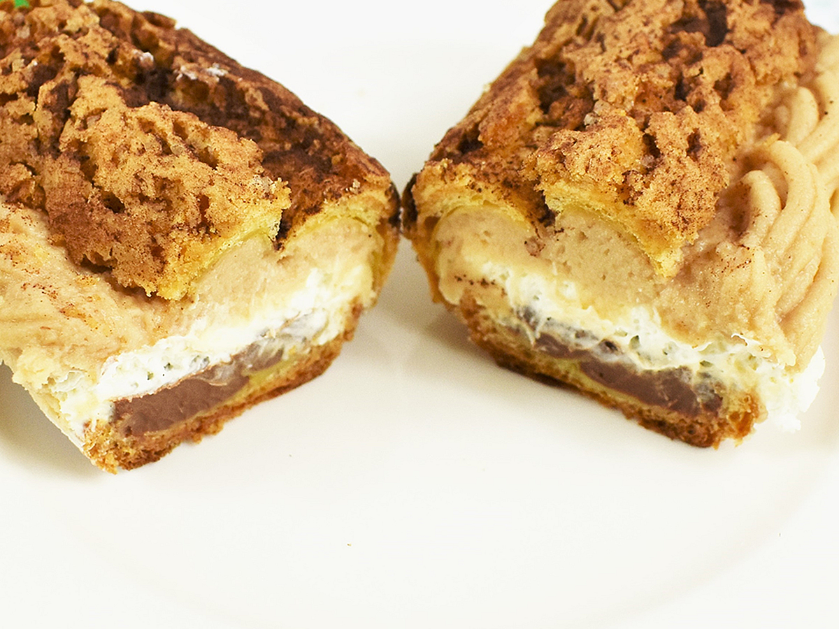 さらに特筆すべきは、濃厚なマロンクリーム。焼き栗が使用されているため、本格的な“栗味”を味わえます。マロンクリームは、チョコカスタードクリームとの相性もバツグン。マロン×チョコは少々甘すぎるのでは? と思いきや、チョコカスタードクリームの甘さが控えめなのでその心配はいりません。