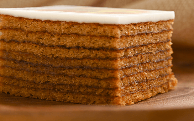 バウムの生地は甘くて芳しい「黒糖バウム」。生地には黒糖が練り込んであり、職人さんが丁寧に焼き上げたしっとりとした味わいに仕上がっています。口に広がる黒糖の香りもたまりません。型抜きしたまわりのバウムも残さず召し上がれ。