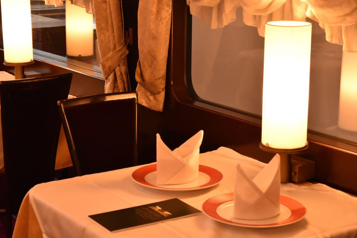 窓がスクリーンになっていて、お食事中は海を中心にした車窓の映像が流れます。こんな雰囲気のなかでお食事ができるなんて、魅力的ですよね!
