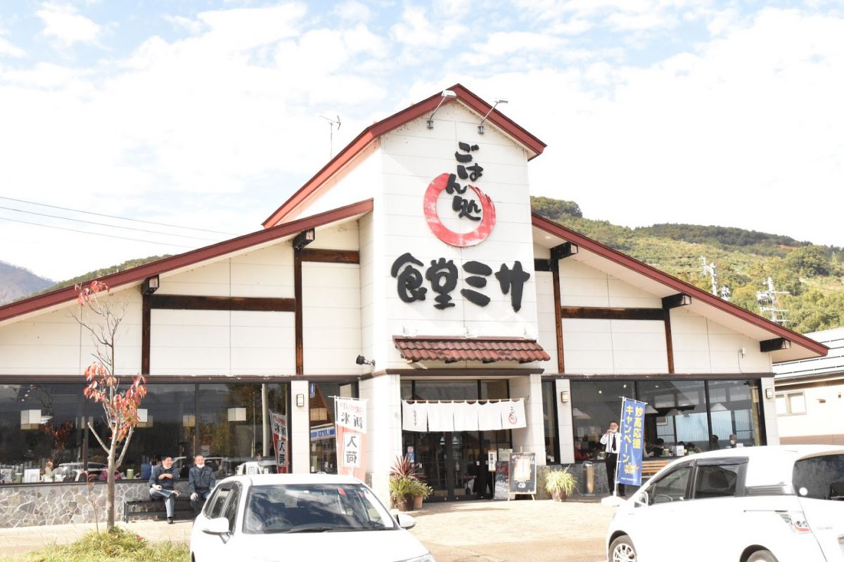 おいしいお昼ご飯を食べるべく、今回は「ごはん処 食堂ミサ」へ。店内に入ってみると、地元の人がたくさん。期待が高まります…!