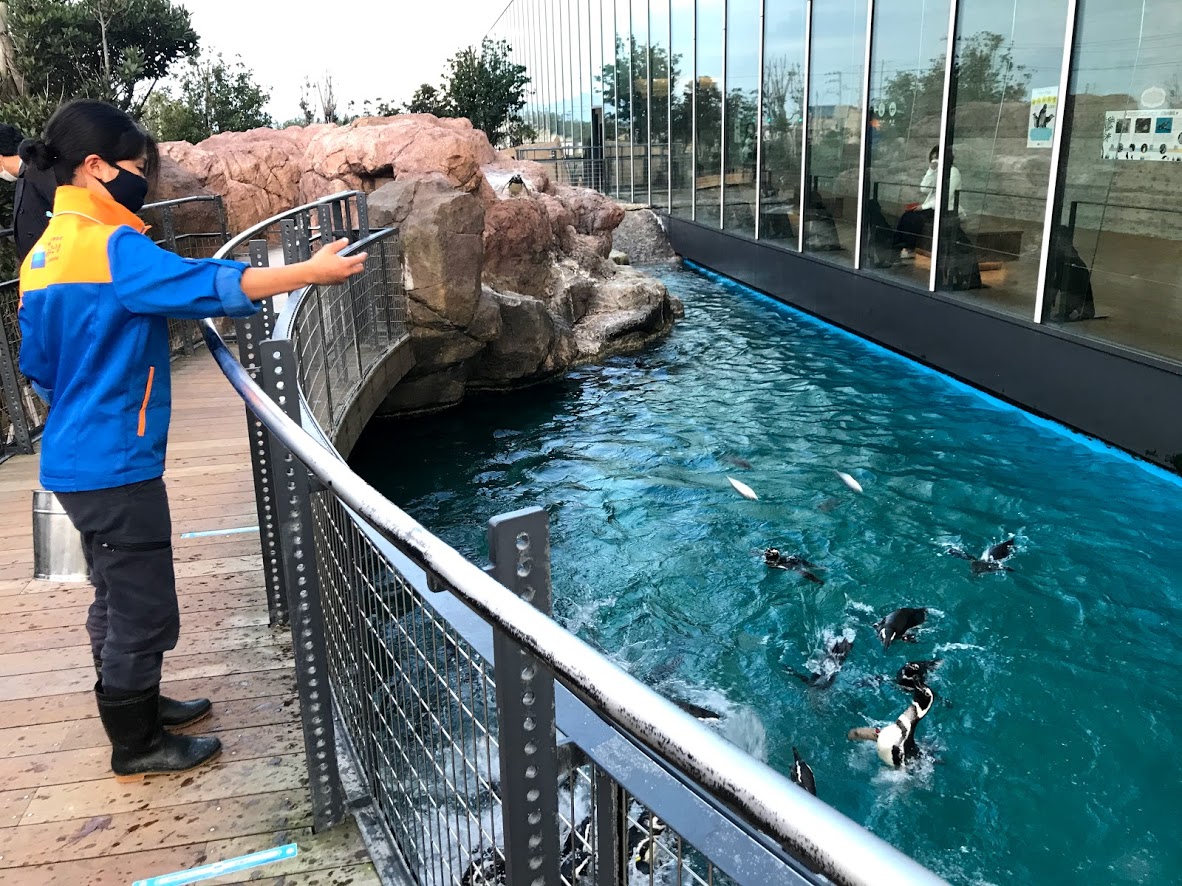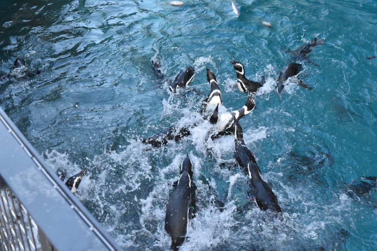 一気にマゼランペンギンたちが集まってきました!ちょっ…ちょっとこわいかも…笑!でもなかなかできない貴重な体験。何回か餌をあげていくうちに、私にはどのペンギンがたくさん餌を食べたのかわからなくなってしまったのですが、飼育員さんはちゃんと見分けて餌をあげているんだとか。すごい!
