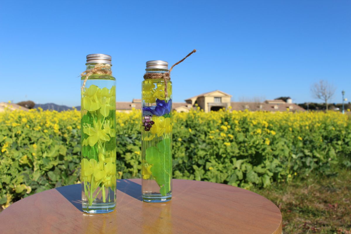 クラフト体験教室では、「菜の花のハーバリウム作り」を開催。1人1600円で、菜の花の造花で、おしゃれなインテリアとしても人気のハーバリウムが作れます。
