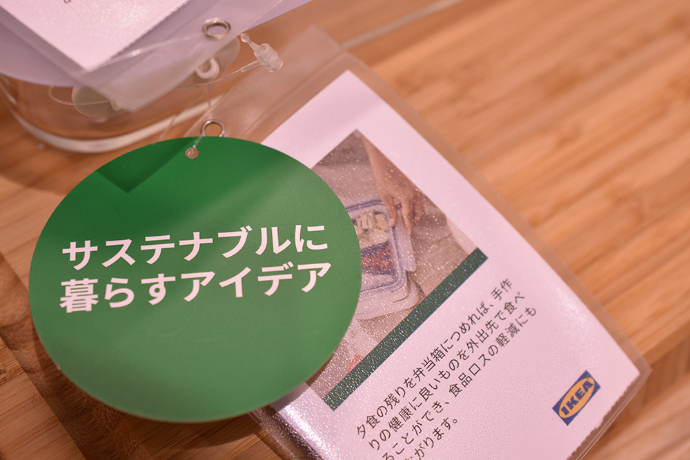 ほかにもサステナブルな提案が盛りだくさん!こちらの「サステナブルに暮らすアイデア」というルームセットには、フードロスを減らす中身の見えるコンテナやサランラップを使わないアイテムなど、さまざまな場所に日常で取り入れられるアイデアが隠されています。