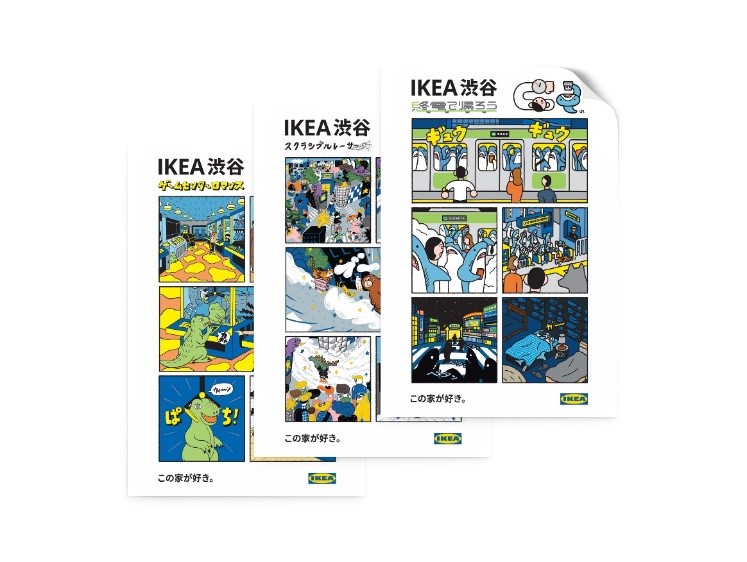 世界的に大人気のイケアのソフトトイ(ぬいぐるみ)が、渋谷のアイコニックな街並みの中で日常を過ごしているイラストを制作。タイプの違う3名のイラストレーターが描くソフトトイの姿はとってもかわいらしくて、本物のぬいぐるみも欲しくなっちゃいますね♩