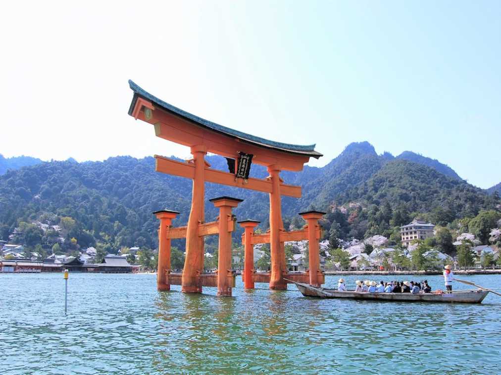 ●憧れの絶景“海上の大鳥居”に大接近!満潮の厳島神社をろかい舟で海上拝観