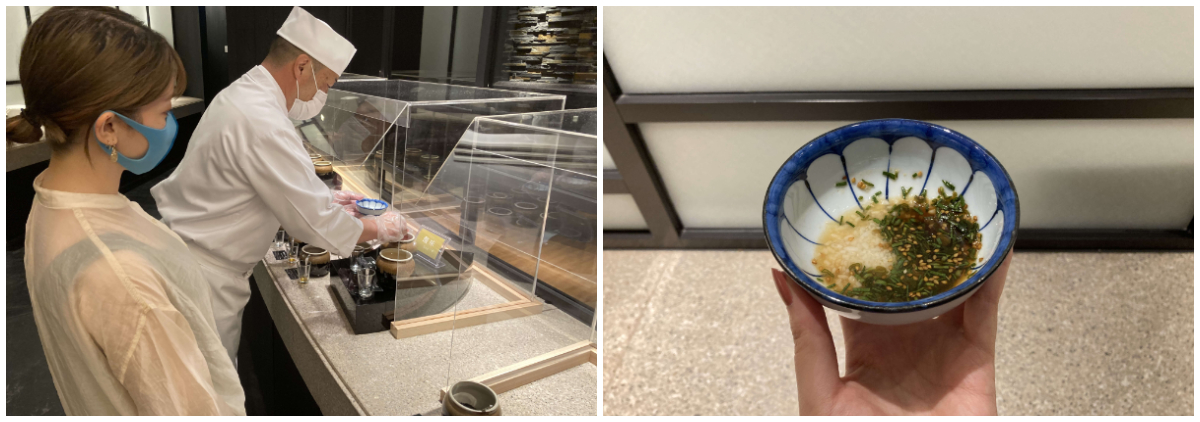 私はいつもゴマダレやポン酢で食べることが多いので、甘酒2杯と柑橘のへべすを組み合わせた甘酸っぱいタレを作っていただきました!
