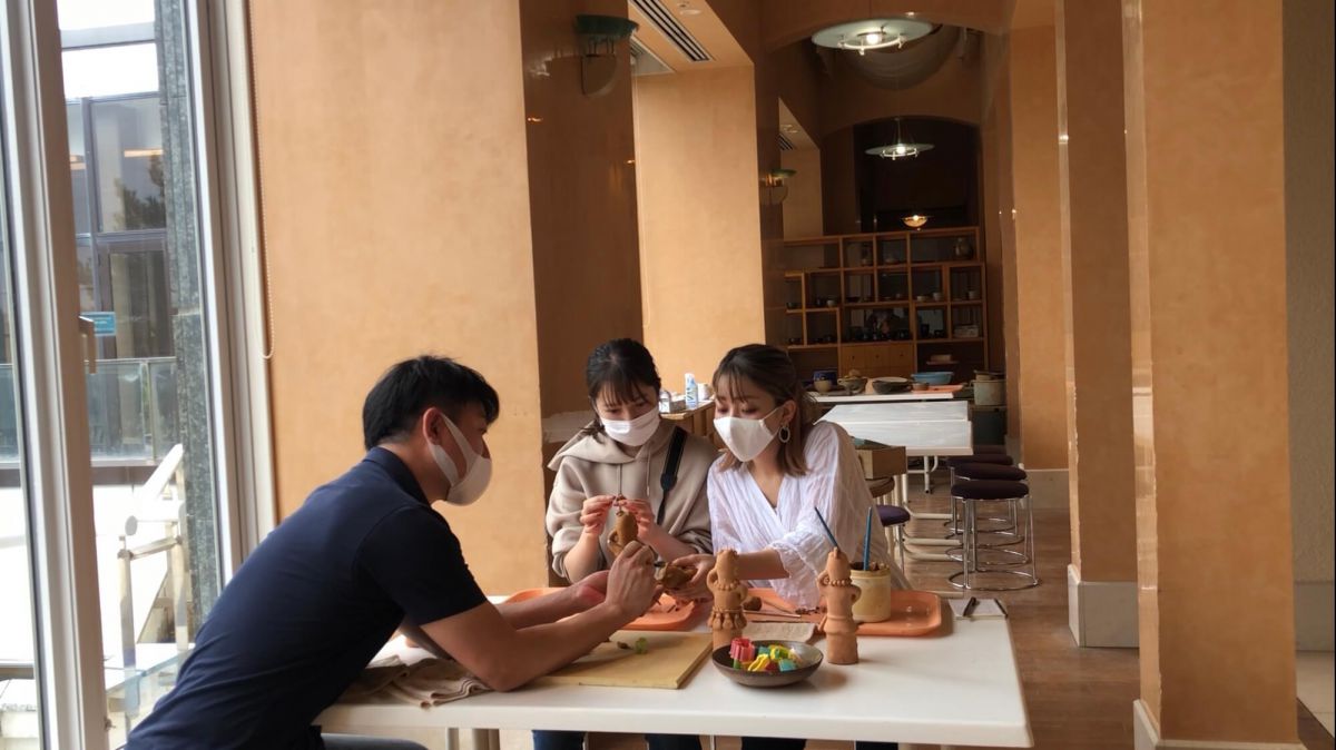 シェラトン・グランデ・オーシャンリゾートでは、ほかにもお皿を作る手びねり体験(2500円)や電動ろくろ体験(3500円)、絵付け体験(1500円)も体験できますが…