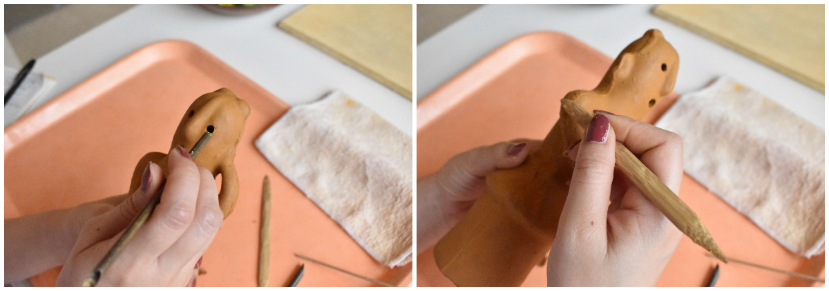 基本的には粘土を、削る・穴を開ける・付け足すの3つを繰り返して好きな形に仕上げていきます。