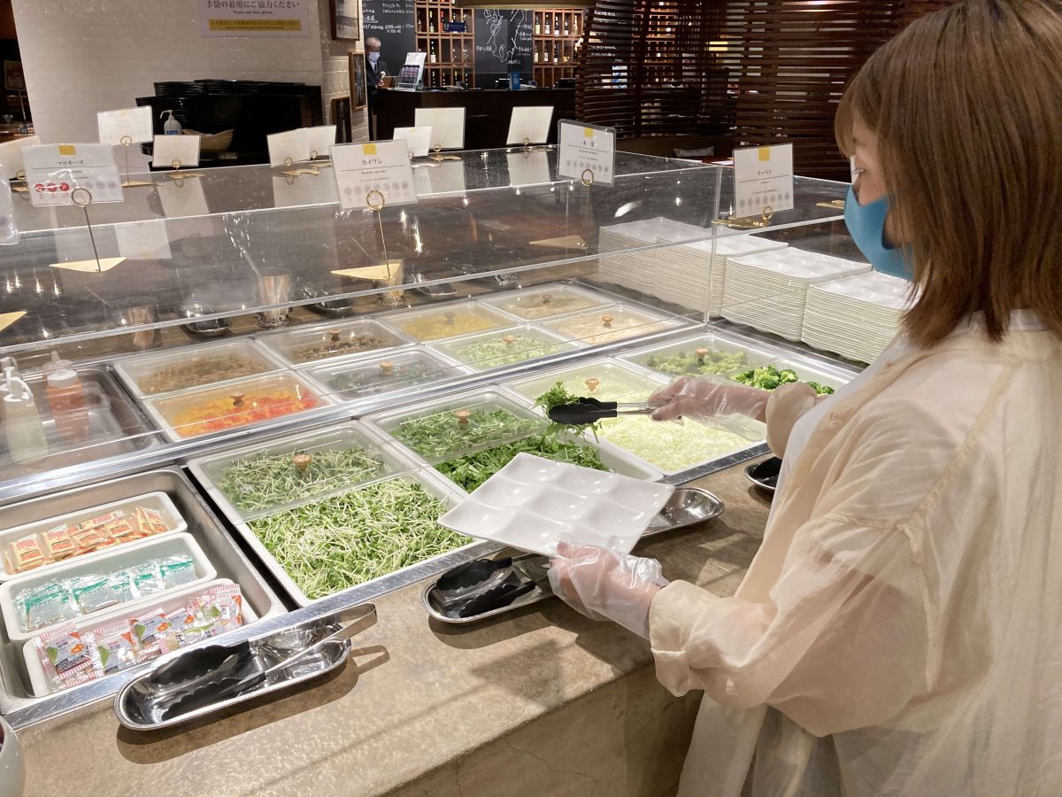 ビュッフェタイプのレストランでは、料理を取る際に手袋をするようになっていました。