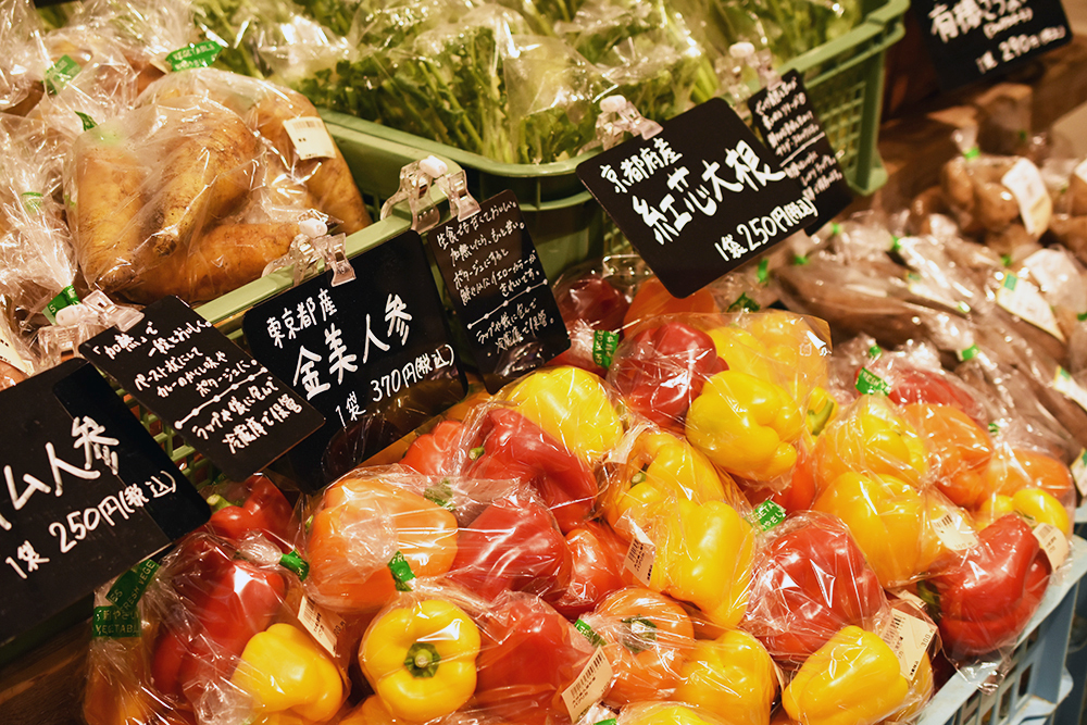生産者が丁寧に育てた新鮮な青果を販売するスペースも。季節のお野菜やフルーツを新鮮、かつリーズナブルなお値段で購入できるのはとってもうれしい!