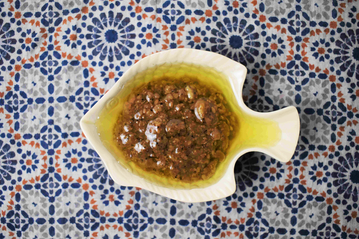 袋を開けると、たっぷりのオリーブオイルに、ゴマ、ピーナッツ、マカデミアナッツ、クミン、コリアンダーなどが入っていて、身体によさそうな感じ! 味のベースとなっているのは塩とコショウのみで、シンプルです。