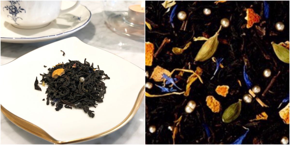 フルーツや花びらが入り、とってもカラフルな茶葉の中には、パールのような銀色の粒が!こちらは、お砂糖を固めてつくられていて、溶けても甘くはならないのですが、目で見ても楽しい仕掛けになっています。