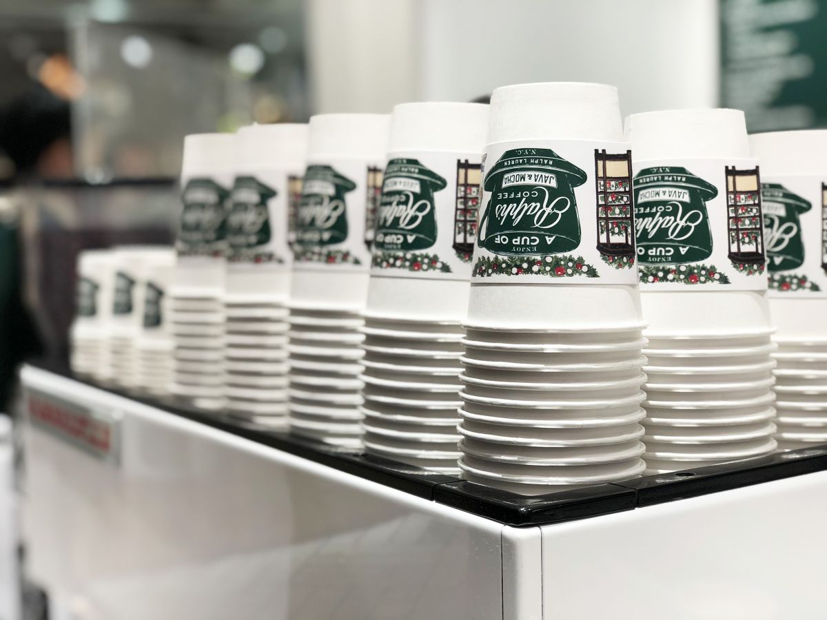 カップのデザインにもこだわりあり!通常はカップに「ラルフズ コーヒー」のロゴが入ったものですが、イベントやシーズンにより限定デザインのスリーブが登場するんです。取材時は、カラフルなクリスマス限定のスリーブでした♪