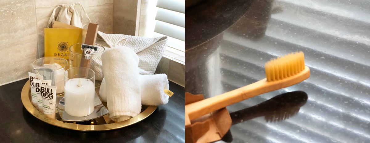 アメニティはなるべくプラスチックを避け、木製や竹製のものを使用。もちろん持ち帰りが可能なので、おうちでも引き続き使うことができますよ!