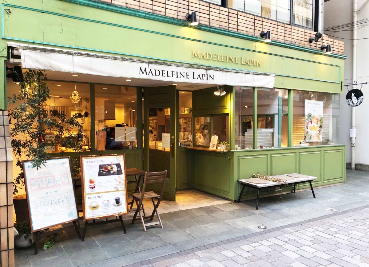 自由が丘駅から徒歩4分、ヨーロッパ風のグリーンの外観がおしゃれな「マドレーヌラパン 自由が丘本店」は日本初のマドレーヌ専門店です。