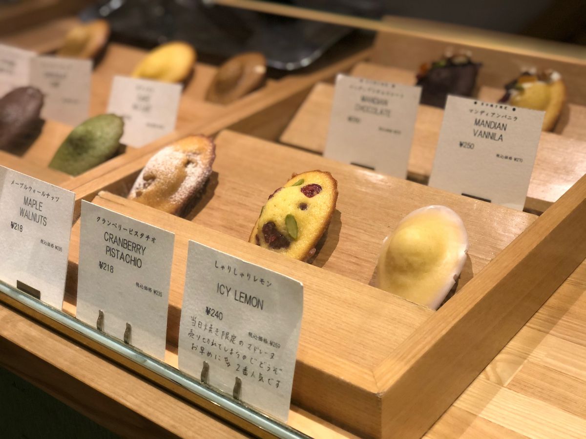 マドレーヌは定番商品のほか、季節に合わせたメニューも常に4〜5種類ほど販売。取材時は全部で9種類のマドレーヌが並んでいました。