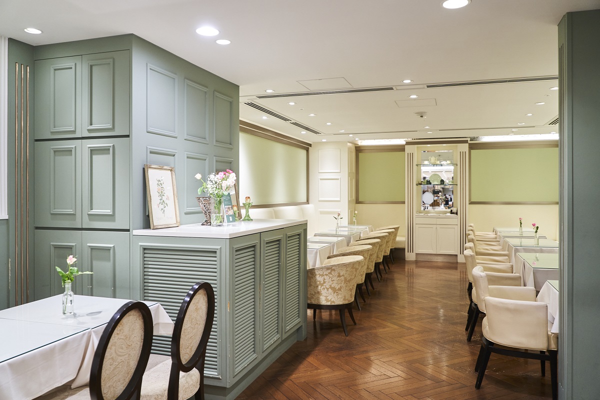 お店があるのは、三越日本橋本店の地下フロア。シックな色の壁に囲まれた、明るいティールームです。こだわりのブレンドティーやスコーンを通して、英国のお茶文化のエッセンスが楽しめます。