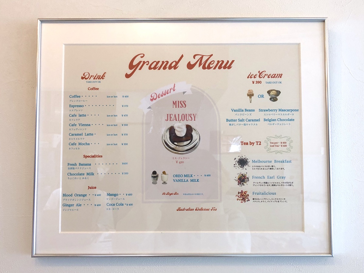 一方、このメニュー表のようにレトロアメリカンなアイテムもチラホラ…。