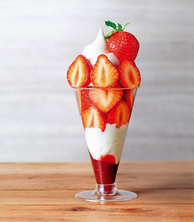 このイベント限定!今が旬のあまおうを贅沢に使い、ソースやゼリーにもこだわった『南国フルーツTOKIO』の「あまおうパフェ」(1人前)1650円は、各日100食限定です。