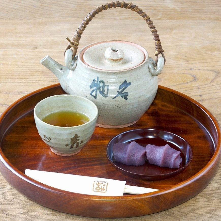三重・伊勢名物のつくりたての「赤福餅 盆」(2個・番茶付)220円を、芳ばしい香りの番茶と楽しめる『赤福茶屋』が登場。