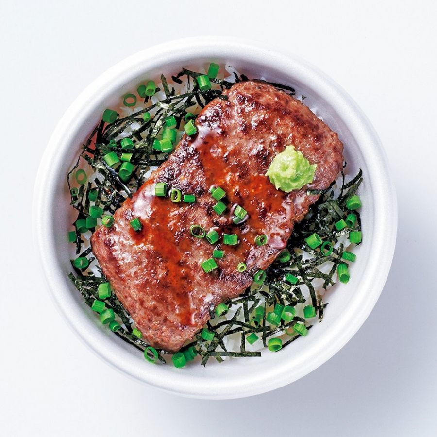 ふっくら焼いたとろろ入り道産牛バーグ、北海道『十勝スロウフード』の「十勝焼き牛とろ丼」(1折)1296円。