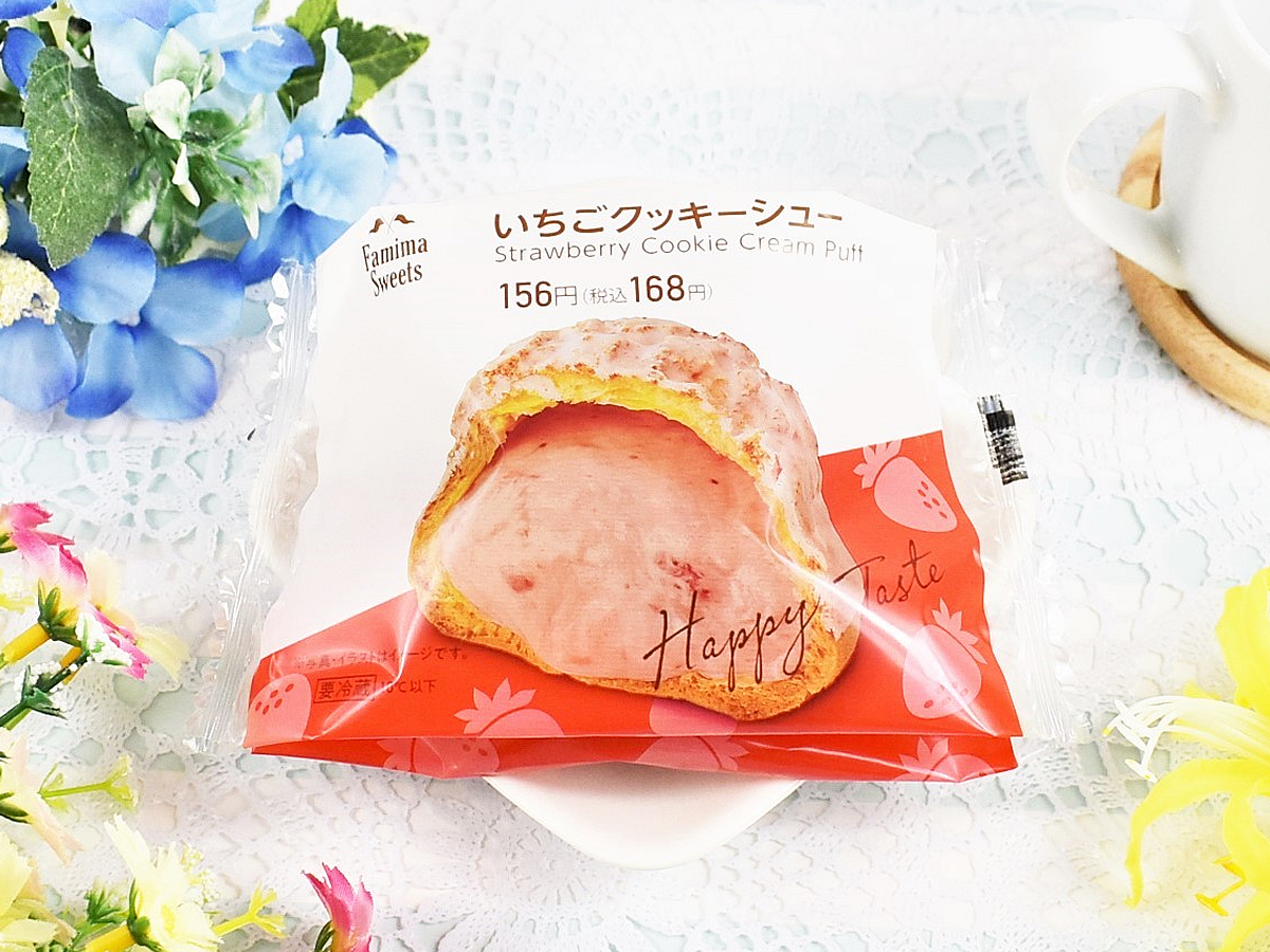 原材料や製法にこだわったファミリーマートの手作りデザート「Famima Sweets(ファミマスイーツ)」。2018年には全面リニューアルがおこなわれ、より多くの甘いもの好きをとりこにしています。そんな人気のファミマスイーツに「いちごクッキーシュー」(168円)が登場。クッキーシューといちごが重なりあうことでどのような味わいを楽しめるのか、じっくりチェックしていきましょう。