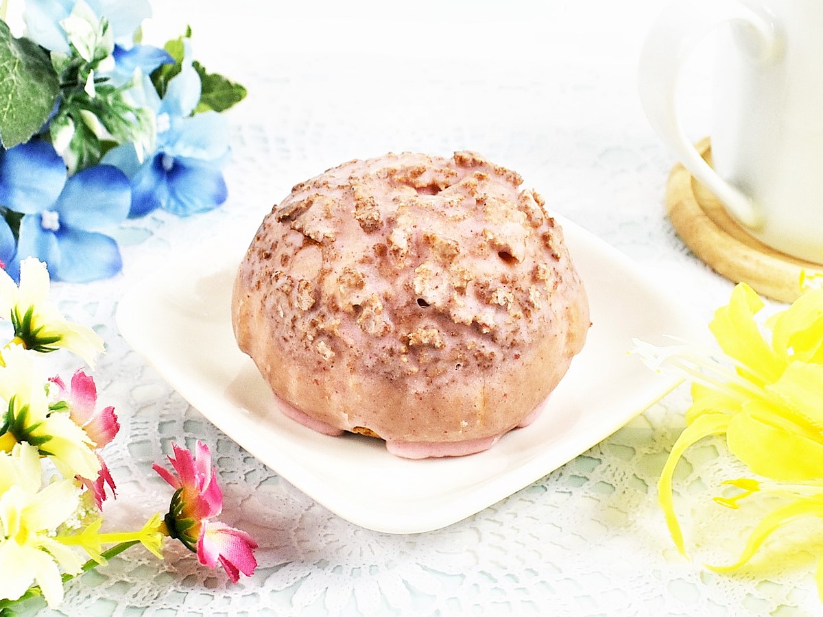 「いちごクッキーシュー」はクッキーを練りこんだシュー生地に、いちごのグレーズをコーティングしているのが特徴。さっそく生地からいただいたところ、クッキーのサクサク感とグレーズのしっとり感が同時に押し寄せることに…。シュー生地のふわふわとした柔らかさも加わり、不思議な歯ごたえを感じることができました。