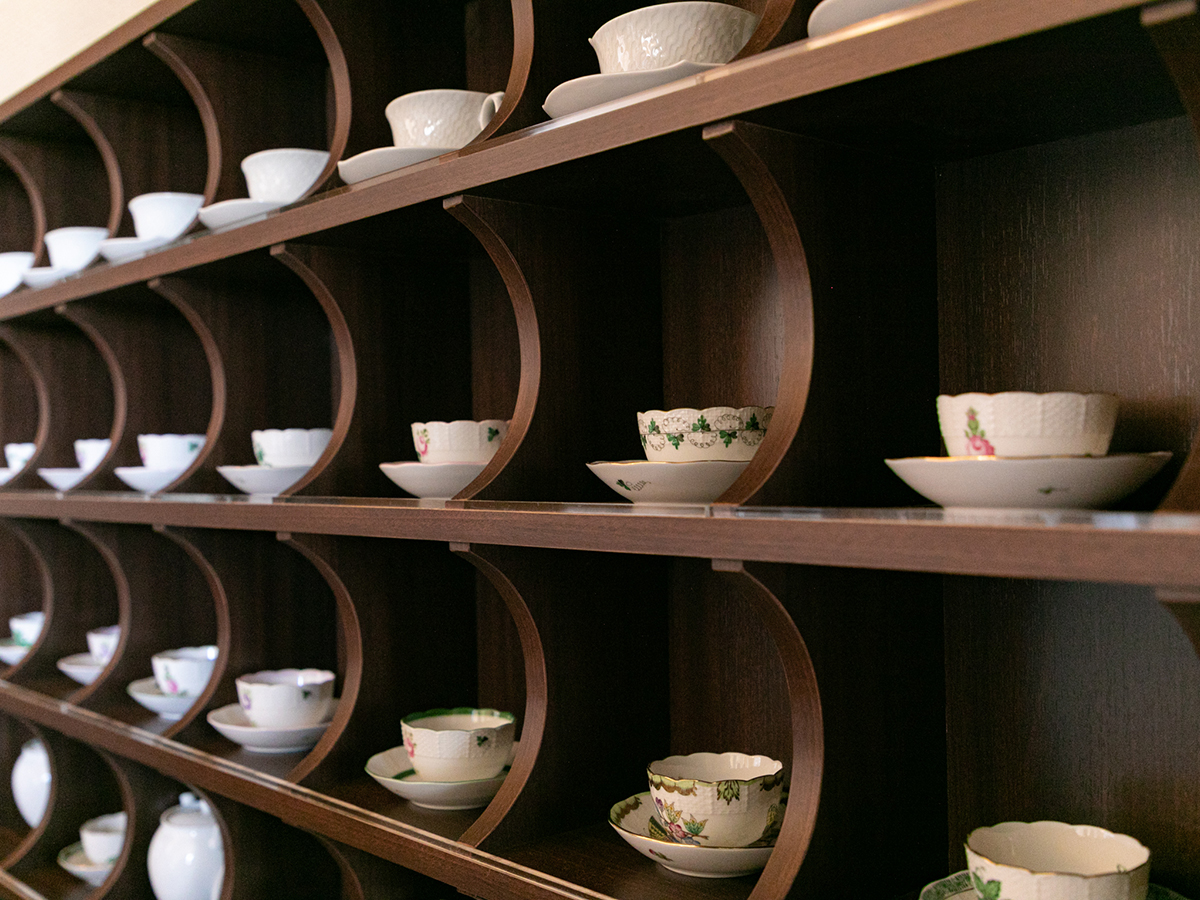提供するカップにもこだわり、紅茶は「ヘレンド」のジャパニーズカップ&ソーサーで、コーヒーは「マイセン」のコーヒーカップでいただくことができ、優雅な気分を味わえます。数種類のデザインがあり、おかわりするたびに違うデザインのカップで提供されるので、一杯一杯を味わう時間がさらに贅沢なものになりそうです。