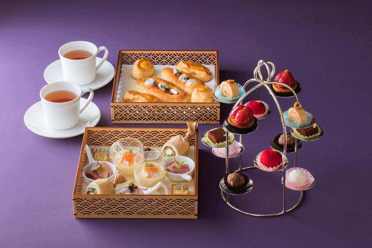まず注目したのがセイボリーです。サンドイッチやキッシュなどは伝統的な江戸小紋柄の木箱に美しく盛り付けられ、和と洋の組み合わせが新鮮!