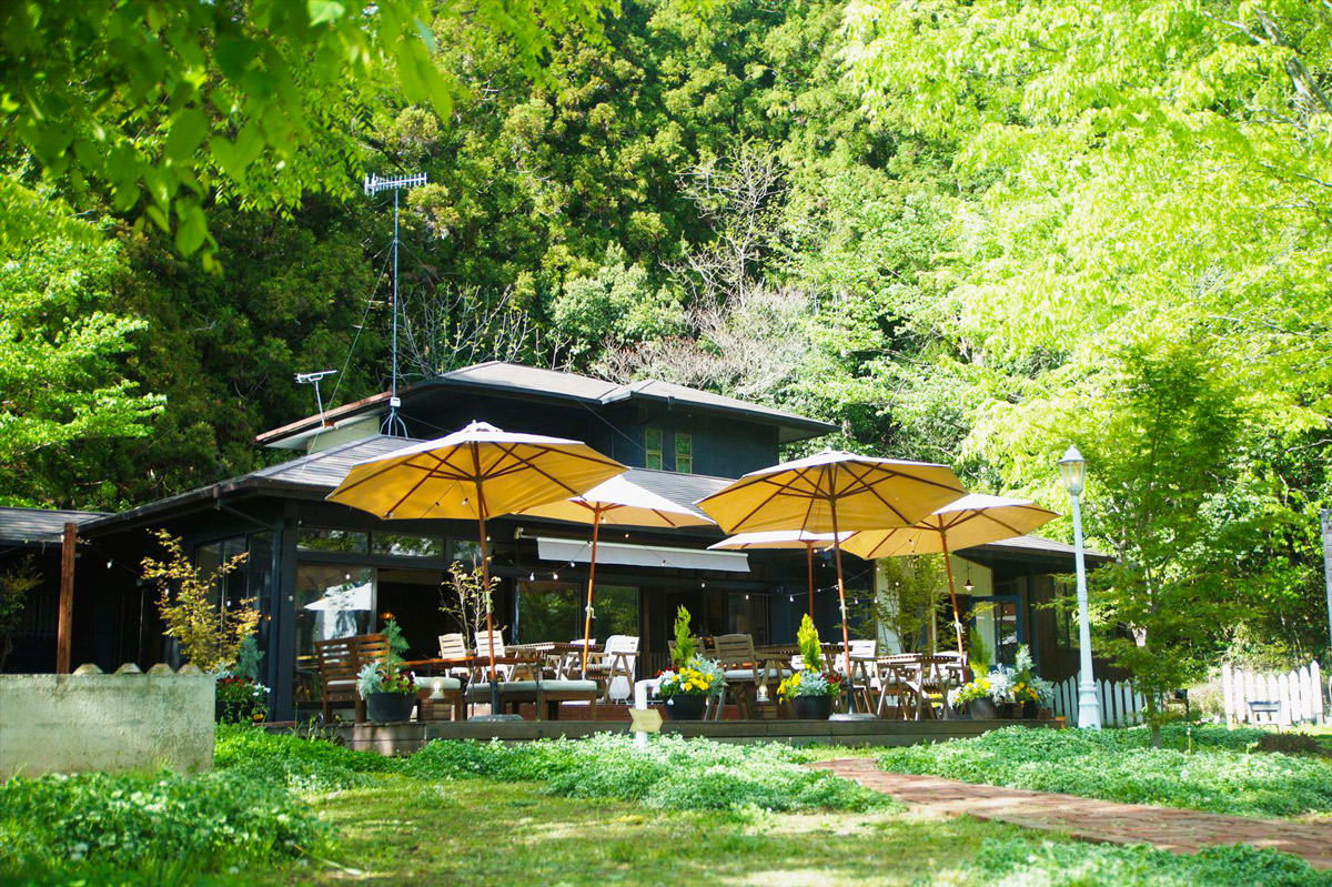さらにおさんぽを続けると、商店街から少し外れた路地奥に素敵なゲストハウス兼カフェ「咲くカフェ」を見つけました。ゆるやかな坂を上った先に立つ一軒家カフェで、お庭に面したテラス席も素敵です。